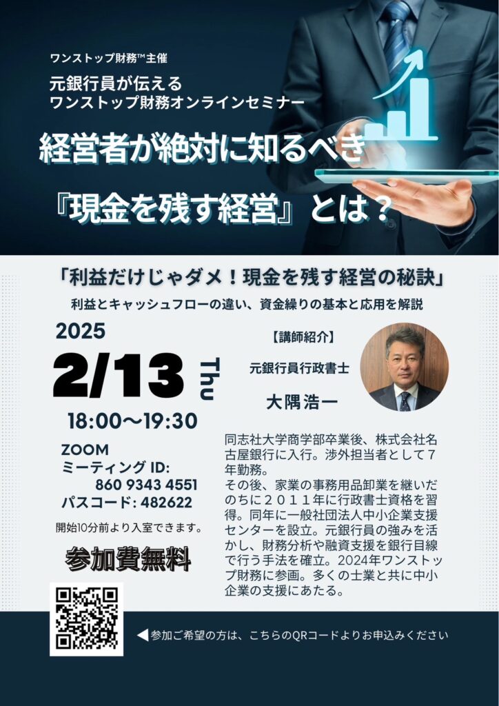 もちろん利益は大事ですが、お金がなくなってしまっては経営を続けることはできません。キャッシュフロー計算書にも少し触れながらキャッシュを残す経営の考え方をお話しします。
